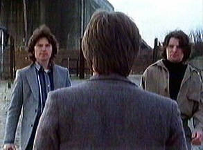 move at a steamhammer pace. Bob Baker's script presents a myriad of plot twists and leads for Eddie to follow. Characterisation is to the fore, with an excellent scene in which Eddie beats his nerves "on air", and several nice touches which cement the Eddie/Erica relationship. The brief car chase among a warren of sloping streets is a delight, reminiscent of cinematic counterparts in films such as "Bullitt". There's a wry humour at play here, when Eddie comments that he's just going to "get the AA" after his car has been destroyed and he's threatened. A mud caked, unconventional fight follows. Another brilliantly conceived and executed episode. |
