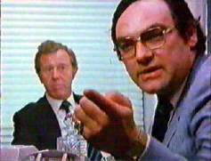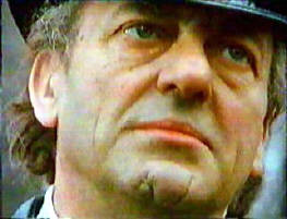 "kidnapper" of the girl he is looking for. Marek Kanievska presents his customary arresting imagery - we are presented with a long, slow tracking shot closing in on the gates of the school at the beginning of the episode, and the close up of Tom's black glasses as he takes the girl at the end hints ominously at the unhappy future she has ahead with her mother. It's impossible to comment on this episode without mentioning Harry H. Corbett's fine performance as the overbearing Tom. There's a fine comic interlude where a bedraggled Eddie arrives late for one of Erica's dinner parties. |