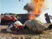 before a bomb attached to the telephone detonates. The two men use the beach buggy to drive to the moors. Reaching the deserted building site, Amery remembers that he had camped there, and then mentions the helicopter.